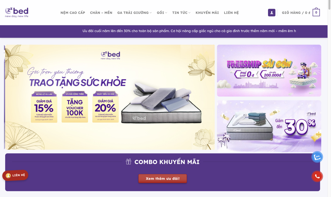 Thông tin liên hệ chăn ga gối nệm cao cấp ZZBED